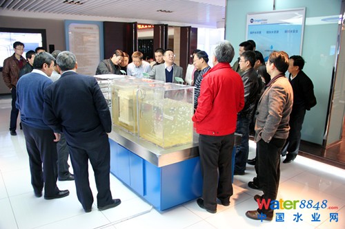 圖為 碧水源總經(jīng)理戴日成帶各位校友參觀碧水源