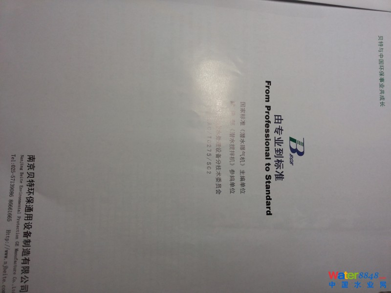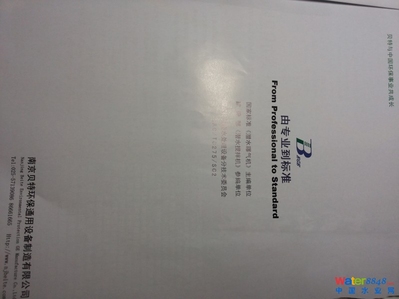 南京貝特環(huán)保通用設(shè)備制造有限公司,簡稱貝特環(huán)保,是國家環(huán)保通用設(shè)備定點生產(chǎn)廠家,中國環(huán)保產(chǎn)業(yè)協(xié)會會員,是行業(yè)中唯一專業(yè)生產(chǎn)潛水攪拌曝氣機械的廠家,現(xiàn)為全國環(huán)保產(chǎn)品標準化技術(shù)委員會水處理設(shè)備分技術(shù)委員會(SAC-TC275-SC2)秘書處承擔單位,同時是現(xiàn)行潛水攪拌機行業(yè)標準CT/T109-2007的參編單位。企業(yè)已通過ISO9001質(zhì)量體系認證。