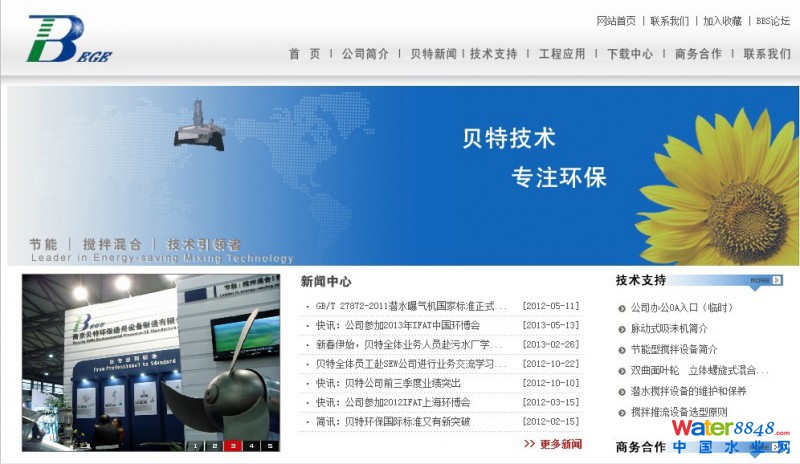 貝特環(huán)保致力于提高我國環(huán)保裝備事業(yè),為了避免低水平重復,在“貝特技術(shù) 專注環(huán)保”的宗旨下,以專注的精神,專業(yè)的方法,選擇潛水攪拌曝氣機械為突破口,并將目光瞄準國際同行先進技術(shù),先后研制出雙曲面攪拌機和深水曝氣機,并取得多項國家專利。公司專利技術(shù)雙曲面攪拌機,倡導立體螺旋式的柔和攪拌混合方式,突出體現(xiàn)了其節(jié)能高效的特色,此外,公司在原有技術(shù)基礎(chǔ)上不斷探索創(chuàng)新,推出新一代QJBA系列節(jié)能型潛水攪拌機以及QDTA型“闊葉型”潛水推流器,整機效能比傳統(tǒng)機型提高30%以上。貝特環(huán)保的產(chǎn)品已在北京高碑店污水廠、深圳羅芳污水處理廠、常州深水城北污水廠、蘇州城東污水廠、上海吳淞污水廠、吉林化纖污水廠、昆明第八污水廠等數(shù)百項國家重點項目中成功穩(wěn)定運行,同時還為多家外貿(mào)成套公司提供OEM業(yè)務。目前,貝特環(huán)保是國內(nèi)生產(chǎn)潛水攪拌曝氣機械系列產(chǎn)品中規(guī)格最多、產(chǎn)銷量最大的企業(yè)。