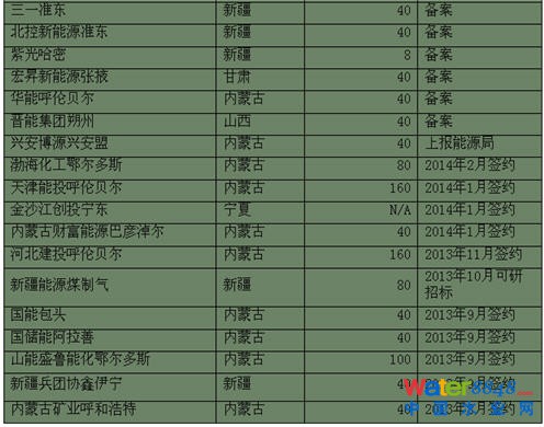 2013年項目審批的提速刺激了煤制氣項目的投資,2013年8月到2014年2月僅僅7個月內(nèi),就有11家企業(yè)與地方政府簽訂項目投資合同,計劃項目總產(chǎn)能達(dá)到780億立方米/年。