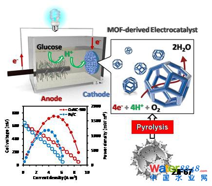 在環(huán)境和能源問題日益嚴峻的今天,從廢物中回收清潔能源是實現(xiàn)人類社會可持續(xù)發(fā)展的重要途徑。微生物燃料電池(MFC)能夠在降解水中有機污染物的同時發(fā)電,在實現(xiàn)廢水處理可持續(xù)發(fā)展方面有著十分廣闊的前景,是目前國內(nèi)外研究的熱點。目前,陰極催化劑是限制微生物燃料電池發(fā)展的一個重要瓶頸。為了克服傳統(tǒng)顆粒態(tài)貴金屬催化劑效率低、造價高、易中毒等缺陷,我校研究人員使用金屬有機框架作為前驅(qū)體構(gòu)筑具有三維多級孔結(jié)構(gòu)催化劑。該催化劑特殊的孔結(jié)構(gòu)能夠強化氧氣和質(zhì)子向三相界面的輸運,使其在“水淹”狀態(tài)下不會像鉑碳催化劑那樣發(fā)生顆粒團聚和粘附,由于不使用貴金屬,造價大大降低。該催化劑能夠在微生物燃料電池中產(chǎn)生比傳統(tǒng)鉑碳催化劑高近40%的功率密度,穩(wěn)定性也大幅度提高。該研究為定向設(shè)計高效、廉價的微生物燃料電池陰極催化劑提供了新的思路和方法。
