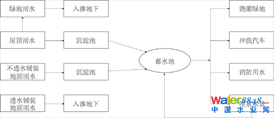 圖4. 新建城區(qū)雨洪利用工藝流程圖