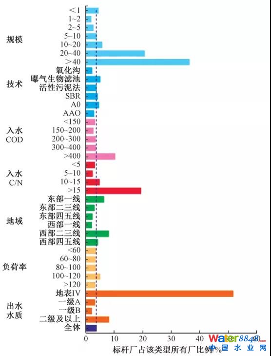 圖7 不同類型污水處理廠中標(biāo)桿廠的比例