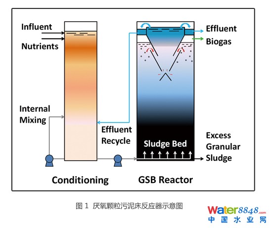 厭氧顆粒污泥床技術(shù)是最有前途的污水處理技術(shù)之一,它適合于濃度較高的污水處理(COD 2,000-20,000mg/L)。在厭氧顆粒污泥反應(yīng)器中,污泥呈顆粒狀,濃度可以達(dá)到傳統(tǒng)工藝的10-20倍甚至更高,密度大、容易分離,因此負(fù)荷高(比普通生化工藝高10-20倍),投資可降低約33%,運(yùn)行成本降低達(dá)67% (見圖1)。
