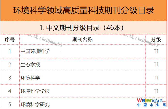 環(huán)境科學(xué)領(lǐng)域高質(zhì)量科技期刊分級目錄(46種 中文)