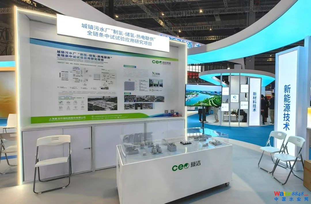 在工博會“創(chuàng)新科技館”的新能源技術(shù)板塊,作為國內(nèi)首家以污泥處理為主營業(yè)務(wù)的科創(chuàng)板上市企業(yè),復(fù)潔環(huán)保的“城鎮(zhèn)污水廠‘制氫-儲氫-熱電聯(lián)供’全鏈條中試試驗(yàn)應(yīng)用研究項(xiàng)目”引起了現(xiàn)場參觀者關(guān)注。