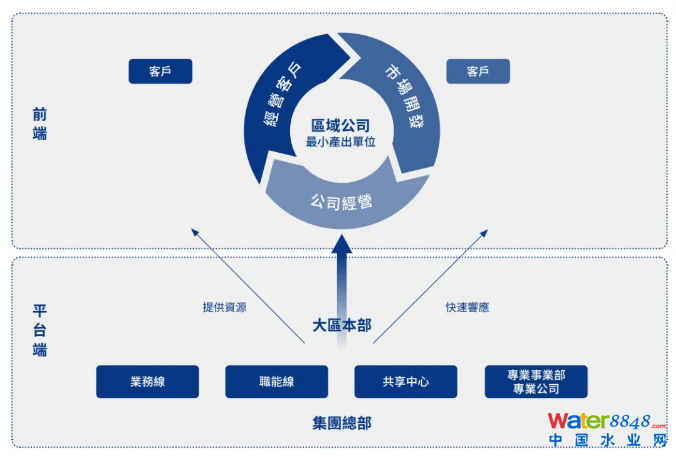 2021年,其啟動(dòng)了總部中心及區(qū)域改革,構(gòu)建了更貼近市場(chǎng)和客戶的區(qū)域組織,形成「集團(tuán)-大區(qū)-區(qū)域公司」三層架構(gòu)。其組織架構(gòu)是:職能制+有限公司制+事業(yè)部制的綜合型組織架構(gòu)。