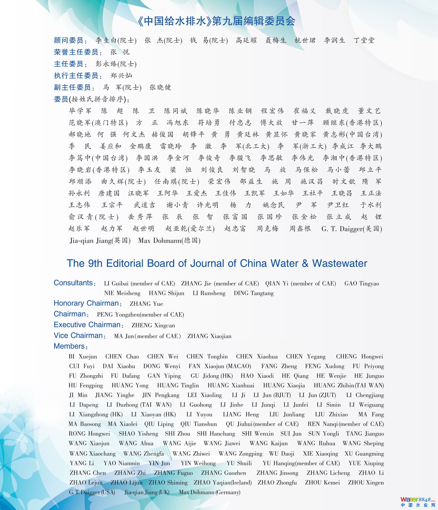 核心提示:《中國給水排水》雜志第九屆編輯委員會-《中國給水排水》第九屆編輯委員會-《中國給水排水》雜志第三屆青年編輯委員會-《中國給水排水》第三屆青年編輯委員會